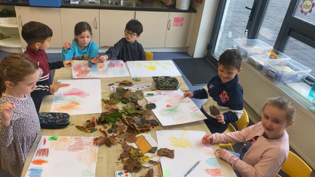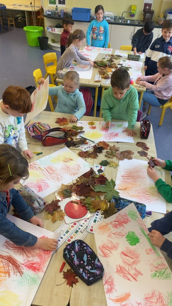 Senior infants have been busy learning about Autumn this month! The class went on a nature walk to collect leaves for their leaf rubbing art which they thoroughly enjoyed ๐